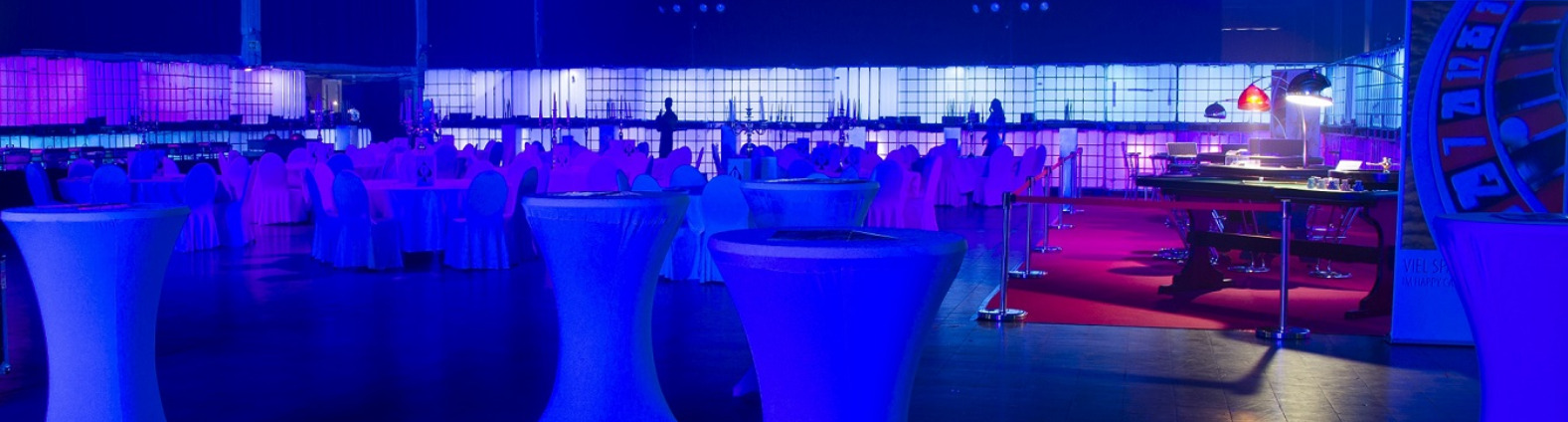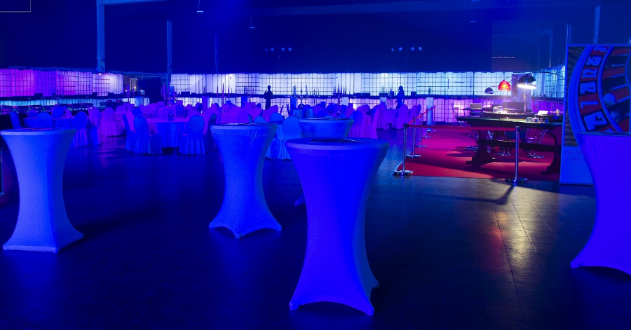 Für den Hintergrund bringen wir Roll-Ups mit Casinomotiven und die passende Beleuchtung mit!